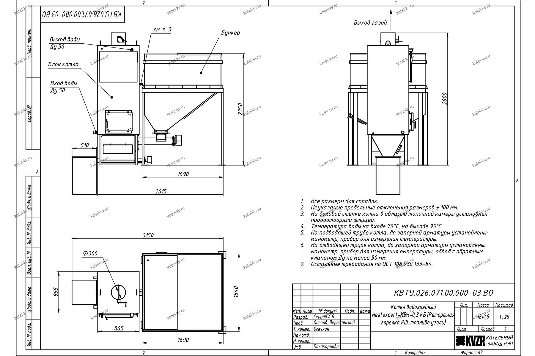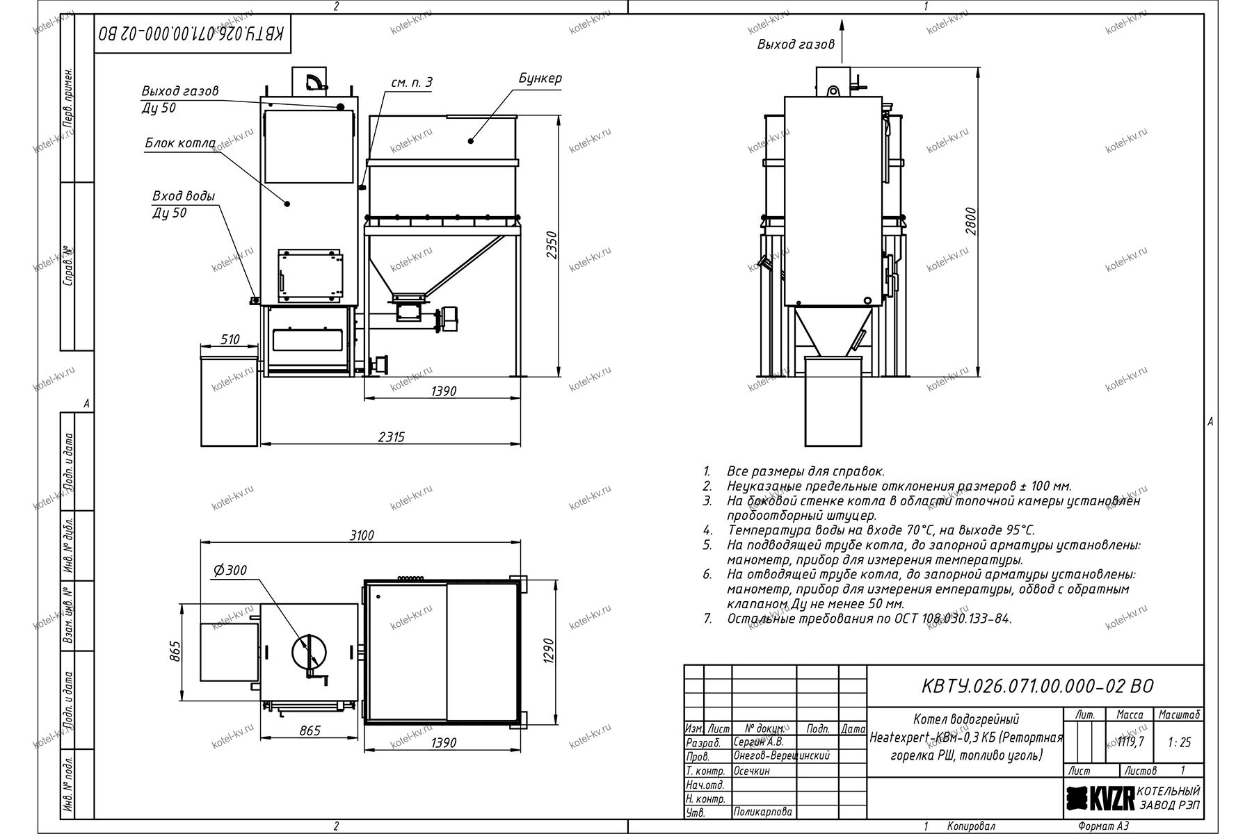 Угольный котел 300 кВт с автоматической подачей конструктивно состоит из следующих блоков: